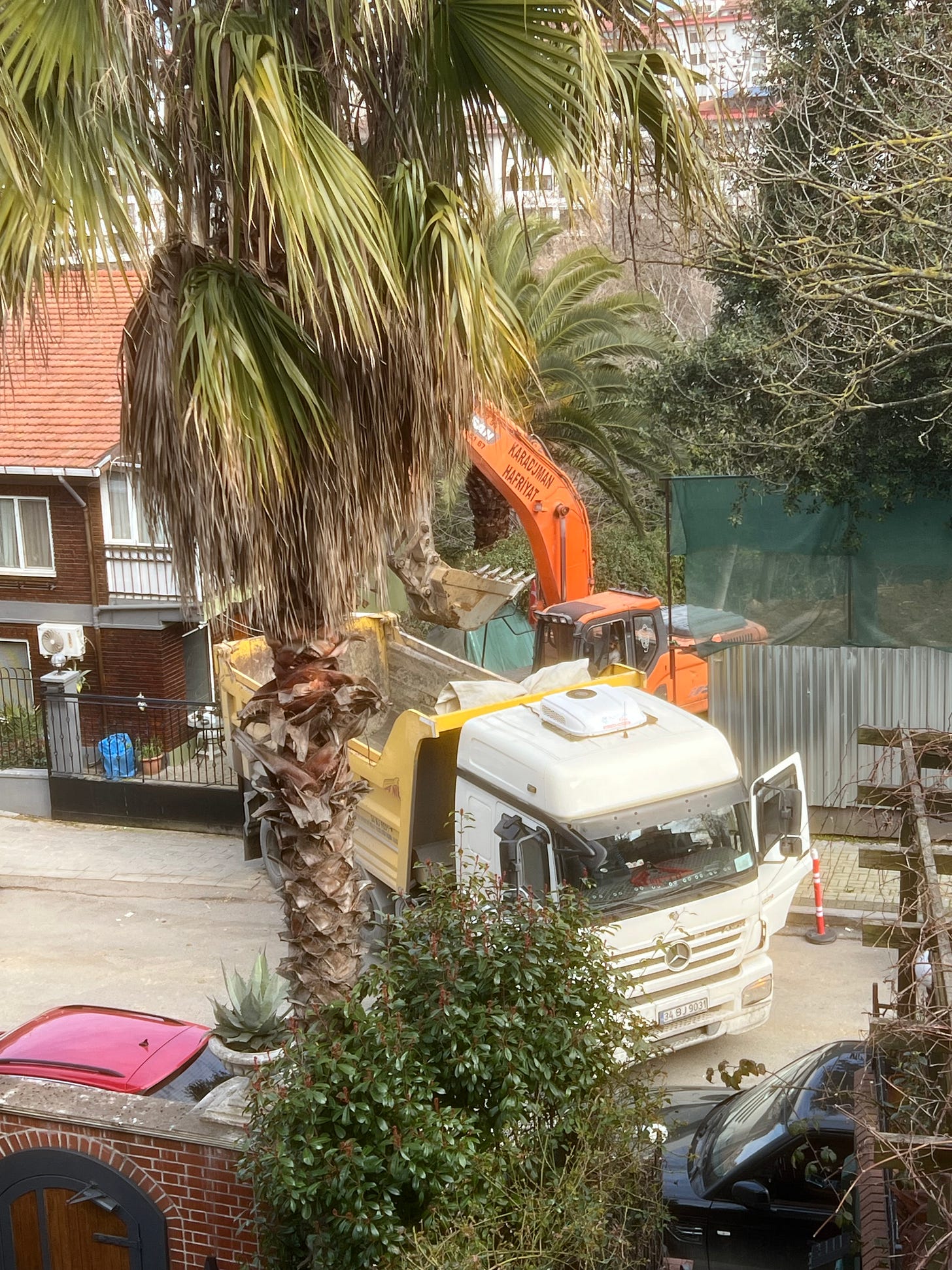 Now they’ve torn down the house directly across from us. That’s the newest structure to be razed on our street, just one more in the epic fury of home building that grips our neighborhood here in Istanbul. The pit where the house once stood, and where our neighbors lived until recently, is now barricaded on street level with corrugated sheet metal, over which we can see from the second floor of our house. This morning when I looked, the rump end of a large orange front hoe emerged from the pit, parked overnight at a tilt, as though its driver had stopped in mid-dig to go home and sleep. As for the house next to it, ie diagonal to us, it was torn down two years ago, but remains far from finished, with groups of men arriving every morning to work on it…we’ve become so accustomed to seeing the faces of this group of construction workers that we know all of them by sight now, and they us. When I come back from the market with bags loaded in my trunk, or with my daughter from school, one of the men always hurries gallantly to make a parking space for my large car, shifting around the traffic cones and barriers put there to make room for the endless stream of trucks and cement mixers that arrive through the day.